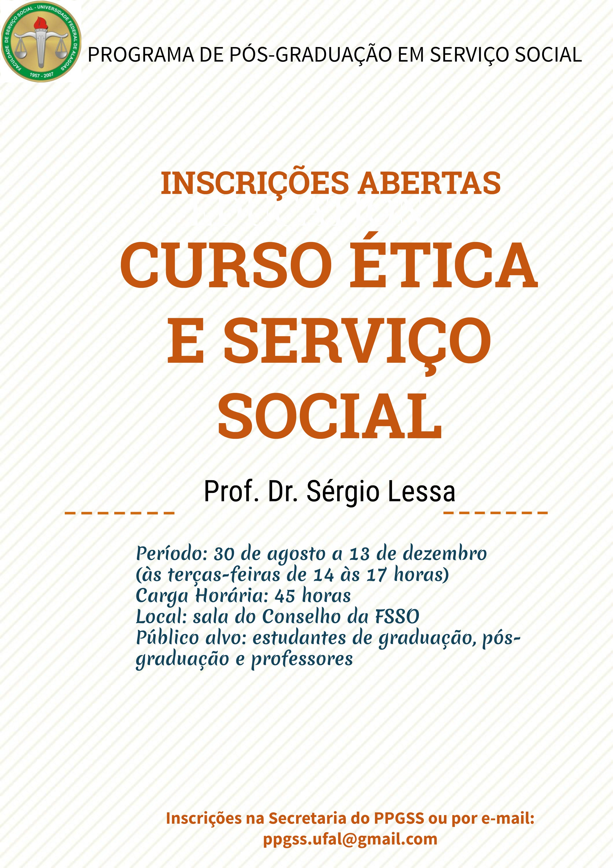Inscrições abertas para o Curso de Ética e Serviço Social