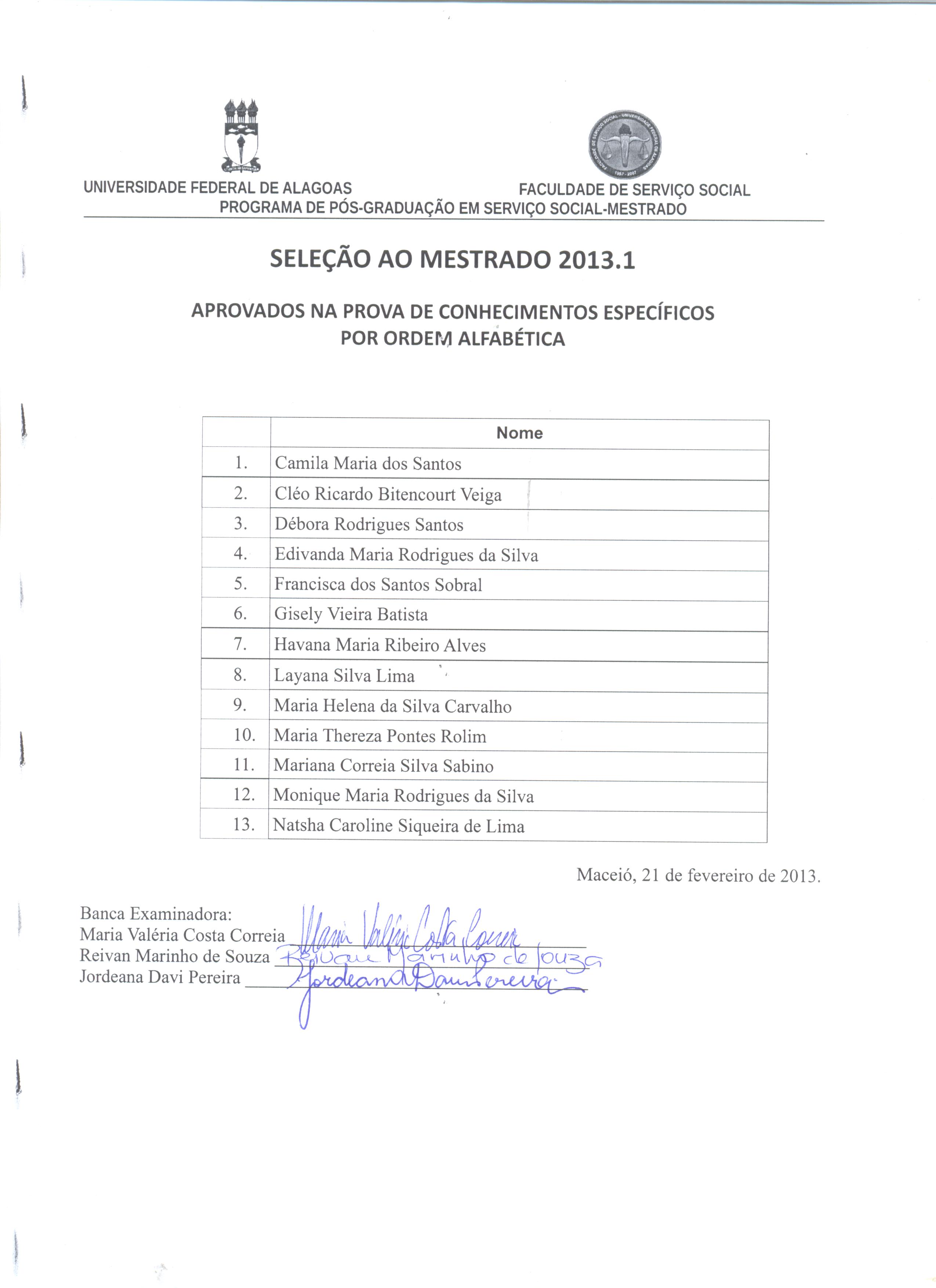 Lista dos aprovados na prova de conhecimentos específicos realizada no dia 19/02